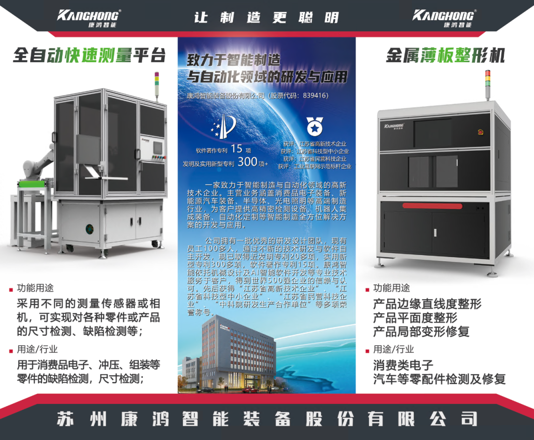 苏州康鸿智能装备股份有限公司(股票代码:839416), 成立于2008年,是一家集研发、设计、制造 、销售与服务为一体的新三板高新技术企业。