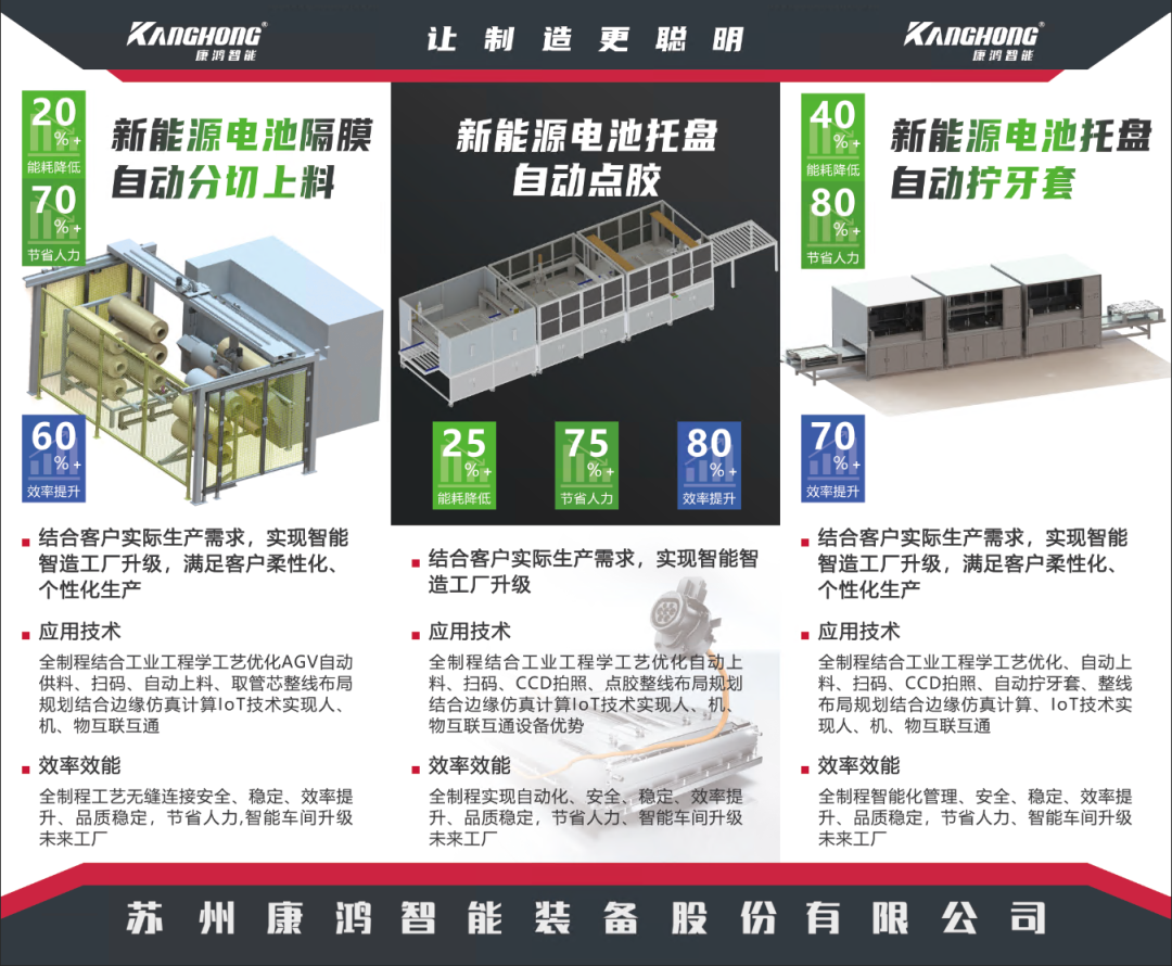 康鸿智能主营研发“消费类电子、新能源装备、光电装备、智能制造产业。通过智能化改造,实现自动化、无人化、信息化、数字化智能工厂。帮助客户提高生效率&自动化集成、AI人工智能检测解决方案。
